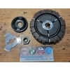 Expanding clutch to fit Puch E50 kickstart engines.When fully open the clutch shoes have a very large contact area compered to normal 2 0r 3 shoe clutches.
